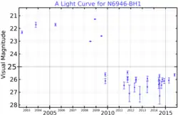 A visual band light curve for N6946-BH1, plotted from data published by Adams et al. (2017)[1]