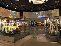 The City of Charlotte was responsible for the construction of the building and is the owner of the NASCAR Hall of Fame. However, it is operated by the Charlotte Regional Visitors Authority. Winston Kelley is the NASCAR Hall of Fame executive director. Internationally renowned Pei Cobb Freed & Partners led the design effort, and Leslie E. Robertson Associates were the structural engineers. Little Diversified Architectural Consulting based in Charlotte is the local architectural firm overseeing many aspects of design and construction of the project. LS3P Associates, Ltd. was the associate architect for the office tower. Tobin Starr + Partners served as site architect, providing full-time representation for Pei Cobb Freed & Partners during construction. Engineering and fabrication of the stainless steel Möbius strip that wraps around the structure was completed by Zahner, of Kansas City. Exhibition design is by Ralph Appelbaum Associates, and exhibition lighting by Technical Artistry. Tobin Starr + Partners is architect-of-record for exhibit and auditorium spaces. Jaros, Baum & Bolles (JB&B) was the mechanical, electrical and plumbing engineer.[3] Site excavation and grading services started on May 21, 2007. The facility features a Hall of Fame and a 19-story office tower. The NASCAR Hall of Fame is set on a 150,000 square feet surface.[4] The museum opened on May 11, 2010.[5] In 2009, NASCAR Hall of Fame established a partnership with Buffalo Wild Wings to be its exclusive restaurant partner in Charlotte.[6]