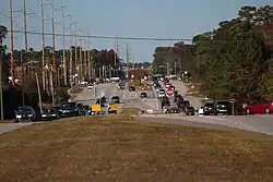 NC 132 was established in 1958 running along College Road from US 421 south of Wilmington to US 117 in Castle Hayne. College Road was a newly built two-lane road, bypassing downtown Wilmington to the east.[8][9] Between 1961 and 1963, College Road was widened to a multi-lane road between Shipyard Boulevard and Wilshire Boulevard.[10][11] NC 132 was further widened from Wilshire Boulevard north to Gordon Road in 1979.[12][13] The construction of future I-40 in Wilmington built a new interchange at Gordon Road, requiring NC 132 travelers to use the exit ramps from the freeway. NC 132 was briefly rerouted to run along the new freeway from Wilmington to US 117 south of Wallace. This left the northern section of NC 132 from the freeway to US 117/NC 133 in Castle Hayne as a secondary roadway.[14] In August 1984, NC 132 was removed from the freeway routing, and reinstated on its previous routing along College Road to Castle Hayne. The freeway became part of I-40, creating the short concurrency at the eastern end of the Interstate.[15] In 1993, the section of NC 132 from US 421 to Shipyard Boulevard was multilaned, becoming the last section south of I-40 to be multilaned.[16][17]