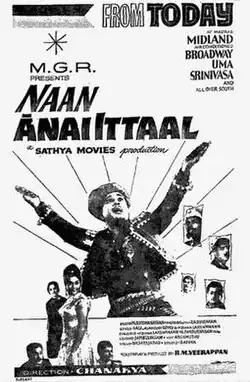 Naan Aanaiyittal (transl. If I Order) is a 1966 Indian Tamil-language film directed by Tapi Chanakya and produced by R. M. Veerappan. The film stars M. G. Ramachandran and B. Saroja Devi. It was released on 4 February 1966.