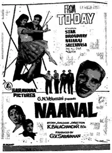 Naanal (transl.Reed cane) is a 1965 Indian Tamil-language crime comedy film, written and directed by K. Balachander. It is based on his play of the same name. The film stars R. Muthuraman, Major Sundarrajan, Srikanth, Sowcar Janaki, K. R. Vijaya and Nagesh. It was released on 24 December 1965 and failed at the box office.
