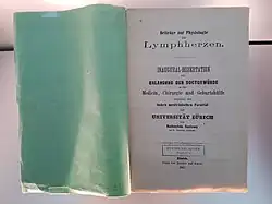 She was allowed by Ivan Sechenov and Sergey Botkin to attend classes at the Imperial Military Medical Academy with Mariia Obrucheva (Bokov), another young woman with revolutionary sympathies who had met Suslova in school.[1][5] Suslova's first article, Changes in skin sensations under the influence of electrical stimulation, was published in Meditsinskiy Vestnik in 1862. In 1865, after women were officially banned from universities, she moved to Switzerland, partially influenced by the arrest of her siblings and Bokov and her husband for political activities. In Switzerland, she audited medical classes at the University of Zurich for two years, then became an official student when the university was opened to women. She had intended to study obstetrics in Paris for her doctoral research, but instead moved to St. Petersburg. For her dissertation, she researched the muscular reflexes of frogs and their relationship to the function of lymph hearts at Graz Medical University in Sechenov's lab. She graduated in 1867.[1][4][5] Suslova was the first Russian woman to be awarded a Doctor of Medicine degree, which was conferred after having to defend her research and education in front of a large audience and the medical school faculty.[7][5]