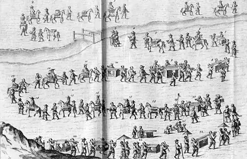 The Nagasaki Kaidō (長崎街道) was a road across Kyūshū from Kokura to Nagasaki, used by daimyōs for the sankin-kōtai, and also by the chief of the Dutch trading post at Nagasaki on whom a similar obligation of visiting the shōgun was imposed. The route stretched 228 km and took travelers approximately one week.[1]