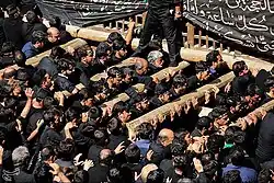 Nakhl Gardani (Persian: نخل گردانی, Persian pronunciation: [næxl ɡærdɑːniː]) or Nakhl Bardari is a Shia religious ritual carried out on the day of Ashura for commemorating the death of Husayn ibn Ali, the grandson of the Islamic prophet Moḥammad and third Shia Imam. Nakhl is a wooden structure used as a symbolic representation of the Imam's coffin and Nakhl Gardani is the act of carrying the Nakhl from one place to another, resembling an Imam's funeral.[1]