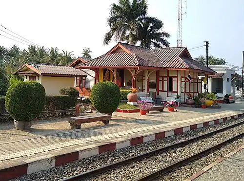 Nakhon Chum railway station is a railway station in Nakhon Chum Sub-district, Ban Pong District, Ratchaburi. It is a class 3 railway station 74 km (46.0 mi) from Thon Buri railway station. Nakhon Chum Station is one of few the stations where the main station building is on the passing loop.