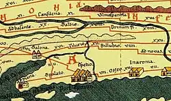 The Roman station Ad Basante from 5th century itinerarium Tabula Peutingeriana.