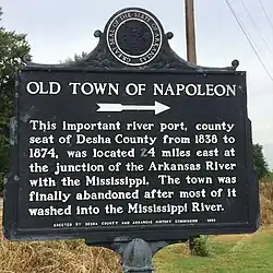 Napoleon was a river port and the county seat of Desha County, Arkansas, from 1838 to 1874. It was located at the confluence of the Arkansas and the Mississippi rivers. Napoleon was badly damaged during the Civil War and then finally abandoned after most of it had washed into the Mississippi River.