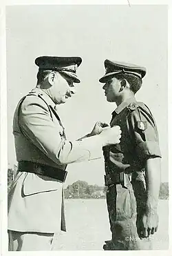 Capt N S Ahlawat being awarded Sena Medal by FM Manekshaw in 1972