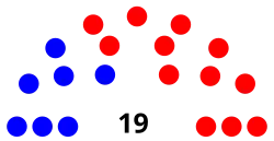 The presiding officer of the Nassau County Legislature is called the presiding officer. The current presiding officer as of January 2024 is Howard J. Kopel, a Republican.[1] The presiding officer sets the agenda and presides at meetings of the legislature. The Republican Party holds a 12-to-7 majority over the Democratic Party.