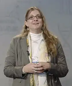 ![]() Natalie Stingelin speaks on plastics at the World Economic Forum in 2016 | |