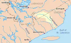 The Natashquan /nəˈtæʃkən/[2] is a river in the Canadian provinces of Quebec and Newfoundland and Labrador. It flows south into the Gulf of Saint Lawrence.