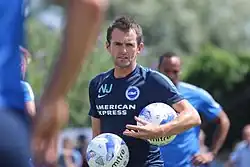 On 19 July 2013, Jones joined Championship club Brighton & Hove Albion, filling the new position of assistant head coach, working under head coach Óscar García.[17] Following Oscar's departure from Brighton and the appointment of new manager Sami Hyypiä, Jones changed roles and became Brighton's first-team coach.[18] After Hyypia's resignation on 22 December 2014,[19] Jones was appointed as caretaker manager.[20] Following Chris Hughton's appointment as manager on 31 December 2014, Jones moved back to his role as assistant manager.[21] On 3 February 2015, after the appointment of Colin Calderwood as Hughton's assistant manager, Jones was demoted to the role of first-team coach.[22]