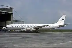 In December 1981, the CAB certificated United Air Carriers (UAC2) (a different entity from UAC1, which dissolved into ONA1) as a charter carrier with authority for passenger and freight both domestic and international. ONA1 owned 100% of UAC2, but UAC2 also did business as "Overseas National Airways". Hence "Overseas National Airways" (ONA1) was both the owner of UAC2, but also its tradename (ONA2).[7] ONA1 (and its predecessor) had been consistently profitable since 1977, with nine-month's revenue to March 1981 of $35.6 million (over $120 million in 2025 terms) and pre-tax profits of $3.5 million,[8] and controlled over 30 large commercial aircraft, including 15 Douglas DC-8s and a Boeing 707.[9] The certificate was effective (including FAA operational authority) in February 1982.[10] The company's headquarters were at John F. Kennedy International Airport in New York.[11] 1982 was the first year "United Air Carriers" or "Overseas National Airways" appears as an airline in the annual FAA Statistical Handbook of Aviation.[12] Neither is present in that publication in 1979,[13] 1980[14] or 1981.[15] As of January 1983, UAC2 had pilot bases at New York and Jeddah.[16]
