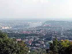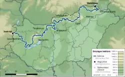 The Pilis Mountains lie in the big bend of the Danube, where it turns towards southern direction from the earlier western-eastern direction. The route of the Blue Trail is similar to a big, inverse "Ω" letter here; the Trail first goes in southern direction until the area of Budapest, only touching the forests of the capital (Mountains of Buda). Not much later the path returns to the Pilis Mountains and reaches the Danube at the Danube Bend at Visegrád, a popular tourist destination known for its castle atop the hill.