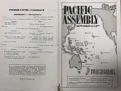 A Programme made for the Pacific Assembly in the mid 1900s. Includes the first and last pages of the programme.