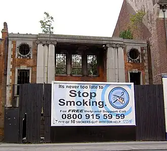 The National Picture Theatre on Beverley Road in Kingston upon Hull, England, was a cinema which was built in 1914. During the Second World War, the cinema was bombed and mostly destroyed when an air raid took place on the night of 18 March 1941. A film had been showing at the time of the bombing, which was Charlie Chaplin's The Great Dictator. All 150 people in the cinema at the time escaped and there were no casualties. The interior of the building was completely destroyed but the facade somehow escaped the blast. It still remains to this day alongside fragments of the foyer and vestibule behind it. The cinema is the last remaining civilian bomb ruin still in existence and was Grade II listed in January 2007.[1]