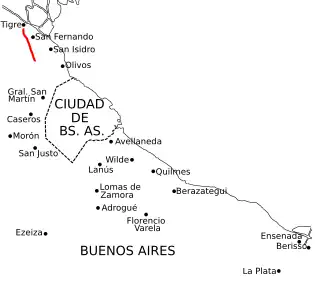 National Route A003,[1] also known as Tigre Access, is an 8.8-kilometre-long (5.5 mi) four-lane highway. It goes from the junction with National Route 9 and Camino de Cintura (Provincial Route 4) to the town of Tigre, passing the towns of: