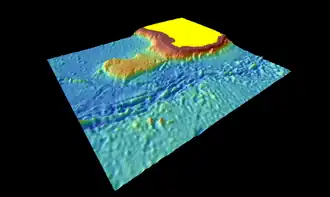 The Naturaliste Plateau is one of several large submarine plateaus extending from Western Australia into the Indian Ocean. It is a rectilinear plateau that covers an area of 90,000 square kilometres. Its width is about 400 kilometres (250 mi) east-west and 250 km (160 mi) north-south. The water depths are from 1500 to 5000 metres.[1]