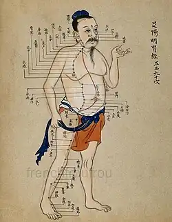 Ancient Chinese acupuncture diagram as used in the Chinese practice of Qi