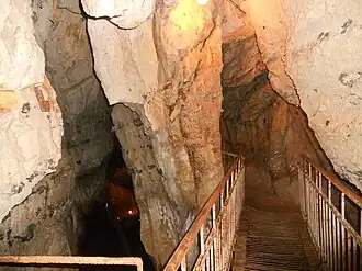 Navenakhevi Cave Natural Monument (Georgian: ნავენახევის მღვიმე) is a karst cave near village Navenakhevi in Terjola Municipality in Imereti region of Western Georgia, 235 m above sea level.[1] In 2017 cave was refurbished to be used as a tourist attraction.[2]