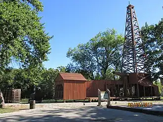 Nellie Johnstone No. 1 was the first commercially productive oil well in Oklahoma (at that time in Indian Territory). Completed on April 15, 1897, the well was drilled in the Bartlesville Sand near Bartlesville, opening an era of oil exploration and development in Oklahoma. It was abandoned as a well in 1964. The site was donated to the city of Bartlesville and is now a park, listed on the National Register of Historic Places, featuring a restored drilling rig.[2]