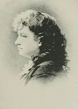 Ellen Marie Sherman was born and educated in Waltham, Massachusetts, about 1850. She was a daughter of Dr. Newell Sherman, of Waltham, a descendant of Rev. John Sherman and Mary Launce, a granddaughter of Thomas Darcy, the Earl Rivers. Rev. Sherman had been a Fellow of Harvard. From him were also descended General William Tecumseh Sherman and Hon. John Sherman of Ohio.[1] The family came to the United States from Dedham, Essex, England, in 1642. Her mother's maiden name was Kimball, and she came from the English Brights and Bonds, of Bury St Edmunds.[2]