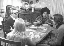 Nelly Beltrán in "Autocine Mon Amour" (1972) From left: Rodolfo Crespi, Nelly Beltrán, Claudio Levrino and with her back to the camera Cristina del Valle