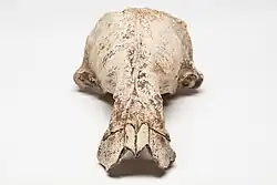 Neophoca palatina, the Pleistocene New Zealand sea lion, is an extinct species of pinniped known from a nearly-complete adult male skull found at Ōhope Beach on the North Island in 1937. It was found in a stratum from the late Castlecliffian stage, suggesting an approximate age of 400,000 years. It was not recognised as representing a new species until 1983,[1] distinguishable from the extant Australian sea lion and New Zealand sea lion by the short palate (leading Dr. J. A. Berry to suggest the species name), lack of processes on the ethmoid bulla and the very wide basiocciptal. A more advanced morphometric analysis in 2016 strongly confirmed that the skull represented a distinct species, closely related to the Australian sea lion.[2] Paleoclimate reconstructions[3] suggest that N. palatina was more tolerant of cold water temperatures than N. cinerea, the only other known member of the genus.