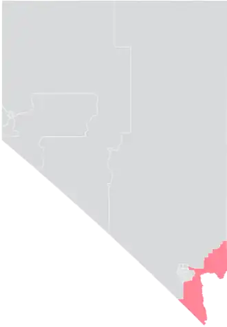 The district overlaps with Nevada's 3rd and 4th congressional districts, and with the 19th and 23rd districts of the Nevada Assembly.[4] It borders the states of Arizona and California.[1]