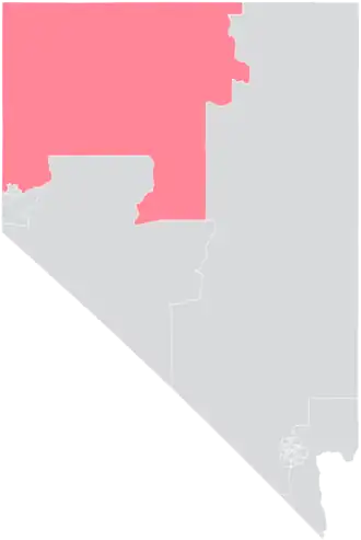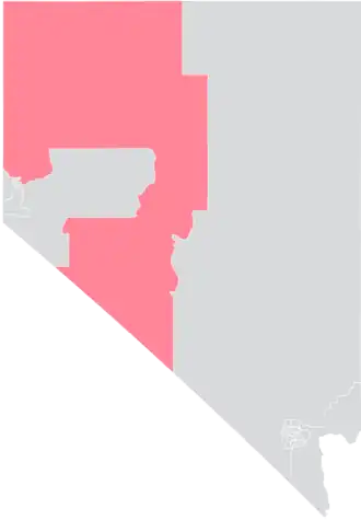 The district overlaps with Nevada's 2nd and 4th congressional districts, and with the 31st and 32nd districts of the Nevada Assembly.[4] It borders the states of California, Oregon, and – just barely – Idaho.[1]