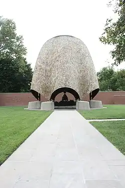 A National Register of Historic Places nomination with an expanded boundary for the New Harmony Historic District was published on May 3, 2000.[1] The boundary increase included resources dating from 1825 to 1867, the period when New Harmony was purchased by Robert Owen until the Owenite influence on the town waned after the American Civil War.[10] As of May 2012, the Indiana State Museum and Historic Sites operates and preserves several properties within the New Harmony Historic District: Community House Number 2, Thrall's Opera House, Fauntleroy House, Harmonist Cemetery, Harmonist Labyrinth, and Mattias Scholle House.[6] Other sites within the district include Philip Johnson's Roofless Church; New Harmony's Atheneum, an award-winning contemporary design by Richard Meier, completed in 1979, that serves as the visitors center for touring the historic district; and Maple Hill Cemetery.[3][7][11]