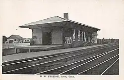 The station in Avon, Connecticut, seen circa 1907 to 1915. This building is preserved in Avon approximately half a mile north of its original location.