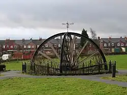 • New Houghton has a public open space – a Millennium Green, created to celebrate the new millennium of 2000 on a what used to be a rather overgrown, ugly site. This contains a pithead wheel, as a reminder of New Houghton's mining past, when most of the men worked at the nearby Pleasley Pit. The Millennium Green has reverted to a rather overgrown site. A charitable trust was set up for the upkeep and maintenance of this green – New Houghton Millennium Green Trust, Charity Number 1072409, Date Registered 1998-11-12, Date Removed 2010-05-09.[9]