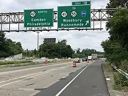 | Gloucester–Camden county line | Washington–Gloucester township line | 6.35 | 10.22 | Southern end of freeway section | ||