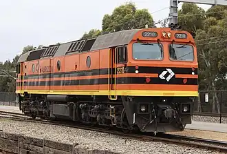 In May 2000, the other 16 were sold to the Australian Southern Railroad and transferred in one movement from Werris Creek where they had been stored to Dry Creek, Adelaide[8] where they were gradually reactivated. Some were placed in service operating construction trains on the Alice Springs to Darwin line as well as in South Australia and Western Australia. Others returned to New South Wales on hire to other operators. It was decided to rebuild all 16 as the 22 class which among other modifications saw air-conditioning fitted, although only 14 ended up being completed at Downer Rail, Port Augusta.[6][9][10]