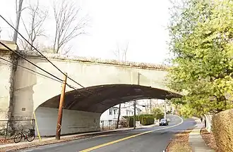 Much of the roadbed three blocks east of and roughly parallel to Old Mamaroneck Road in White Plains south of the former Mamaroneck Avenue station to the city border with Scarsdale is the White Plains Greenway, a pedestrian trail.[14]