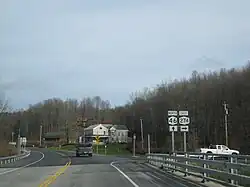 Paralleling the Mohawk River from a distance, NY 46 soon reaches a junction with the northern terminus of NY 274.[4] At NY 274, NY 46 turns northward near the abandoned Black River Canal[6] and crosses through the hamlet of Frenchville before reaching North Western. Running between the river and Buck Hill, NY 46 begins a northwest route through the town of Western, but changing directions at the hamlet of Hillside, where a connector to Western Hill Road (CR 76) is provided. Now running northward, NY 46 returns to the rural settings north of North Western and soon reaches the rural hamlet of Dunn Brook. Just north of Dunn Brook, the route crosses the town line from Western into the town of Ava. The stretch of NY 46 in Ava is very short and after one curve, the route crosses into the town of Boonville.[4]