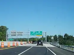 The first section of NY 840 opened to traffic on June 29, 2005, extending from the North–South Arterial to Middle Settlement Road.[2] The remainder of the highway opened on October 3, 2005. In all, the project cost $45 million,[5] including $33 million for the road itself.[2] In April 2007, a bill was introduced in the New York State Senate that would ceremoniously designate NY 840 as the "Officer Joseph D. Corr Memorial Highway". It was passed by both houses of the New York State Legislature and signed into law by Governor Eliot Spitzer on July 18, 2007.[6]