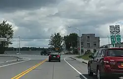 Northern terminus as seen from northbound US 11 in Rouses Point.