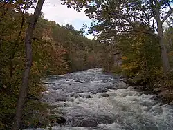 The Newfound River begins at the outlet of Newfound Lake in Bristol, New Hampshire. The river drops rapidly through the town of Bristol, passing over several hydroelectric dams before reaching the Pemigewasset.