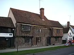There are many attractive old buildings in the village, a characteristic of the area. The church, St Mary the Virgin,[7] dates from the late 14th century. Perhaps the two most interesting other buildings are The Crown House (mostly late 16th century), and Monks Barn, a Wealden type house dating from the 15th century.