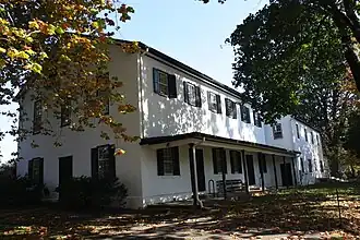 Newtown Friends Meetinghouse and Cemetery is a historic Quaker meetinghouse and cemetery in Newtown, Bucks County, Pennsylvania. It was built in 1817, and is a two-story, stuccoed stone building with a gable roof. It measures 60 feet by 40 feet, 6 bays long and 3 bays deep. A one-story porch was added in 1866, and the second floor was added in 1900. Also on the property is a contributing horse shed, built in 1819. Adjacent to the meeting house is a contributing cemetery.[2]