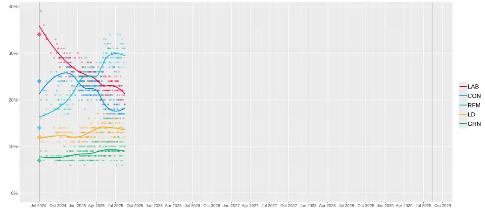 Opinion polling for the next United Kingdom general election is being carried out continually by various organisations to gauge voting intention. Most of the polling companies listed are members of the British Polling Council (BPC) and abide by its disclosure rules. The dates for these opinion polls range from the 2024 general election on 4 July to the present day.