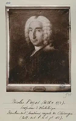 • Dumont, M (1988). "Nicolas Puzos: an obstetrician of the 18th century. From military surgery to obstetrics and from milk fever to placenta praevia". Journal de gynécologie, obstétrique et biologie de la reproduction. 17 (4): 431–7. PMID 3062066.
