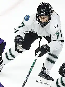 During the 2015–16 season, in her senior year, she recorded ten goals and 15 assists in 33 games and helped Quinnipiac win the ECAC Hockey tournament for the first time in program history.[3] On October 10, 2015, in a game against Maine, she became the third player in program history to record 100 career points.[4] Following the season she was named to the All-ECAC Hockey Third Team for the third time in her career.[5] She finished her career at Quinnipiac ranked second in program history in points (123) and assists (84).[1]