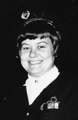 In 1964 Nicole Schrottenloher became the first woman Gadzarts,[6] the nickname given to students attending the Arts et Métiers ParisTech (formerly the École Nationale Supérieure d'Arts et Métiers - often abbreviated to ENSAM), a grande ecole (university) specialised in engineering.[1] Her entry into ENSAM was the subject of significant media attention.[5] The Gadzarts wear a formal navy blue uniform, nicknamed a 'Zag', in a nod to the university's military foundation. As the first woman to join the college, it was decided that a women's uniform was required. It was designed for her by French designer Jacques Esterel, himself an earlier graduate of ENSAM (Cl. 35), who also designed uniforms for air crews and French Olympic teams in the 1960s.[5]