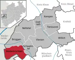 Viersen (district)North Rhine-WestphaliaKleve (district)Wesel (district)DuisburgKrefeldRhein-Kreis NeussMönchengladbachHeinsberg (district)NetherlandsNettetalTönisvorstGrefrathNiederkrüchtenBrüggenViersenWillichKempenSchwalmtal