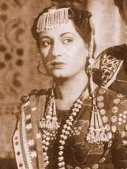 She made her debut as an actress in 1953.[4] She worked in many Lollywood films.[5] She appeared in films Pasban, Nooran, Teray Baghair, Insaf, Tamanna, Rahguzar and Mitti Dian Moortan.[6] Then she changed her name to Nighat Sultana and later she appeared in films Pazeb, Koh-e-Noor, Afshan, Salgira, Jaisay Jantay Nahin and Afsana Zindagi Ka.[7] In 1956, she played the leading role in the country's first Sindhi language film Umar Marvi.[8] Since then she appeared in films Zanjeer, BeGunah, Sukh Ka Sapna, Lakhpati, Jan-e-Bahar and Shehbaz[9]