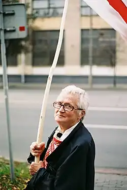- ^ "У здания КГБ задержана общественная активистка Нина Багинская, которая сожгла советский флаг".