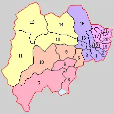 With the establishment of the municipality system on April 1, 1889, the district was consolidated into 21 villages.